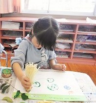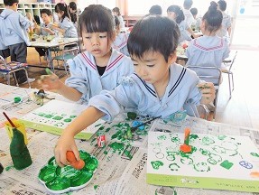素材に絵の具を塗り どんどんスタンプしていきます!