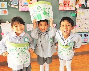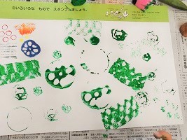 ご家庭からスタンプになりそうな物を選んで、持ってきていただきました。