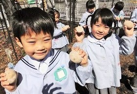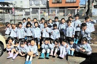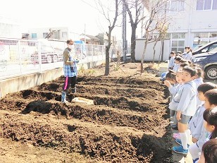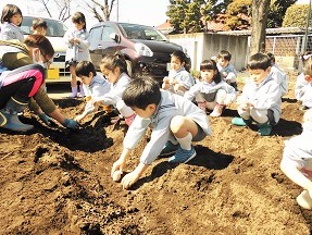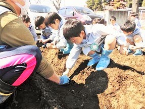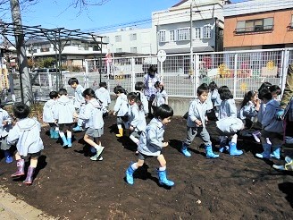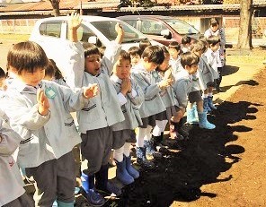 収穫への期待を胸に、今日の種芋植えを終了したゆきぐみさん、