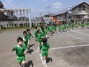 年中組になり友達と手を繋がずに列を保ちながら初めて行進をしました。