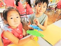 子供たちと、とんぼを作りました。