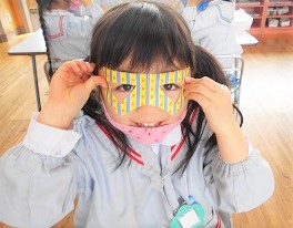 今日のきりがみあそびの題名は ≪おしゃれめがね≫です!