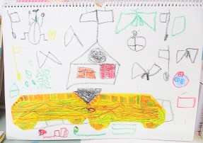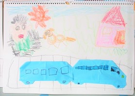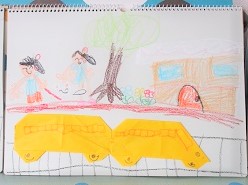 製作帳に思い思いの風景を描き、楽しい旅にお出かけです!!