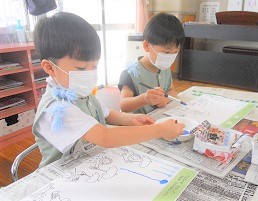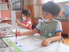 この時期ならではの「季節の絵の具遊び」ですね(^^)♪