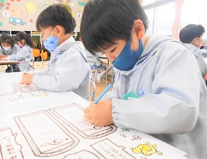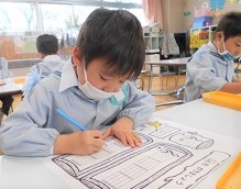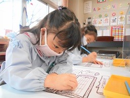 鉛筆の持ち方も覚え、姿勢よく練習していて素晴らしいですね!