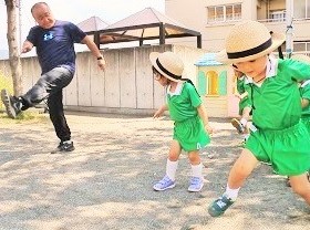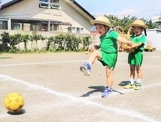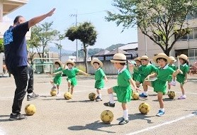 今日は 3歳児クラスのサッカーが園庭で行われました。