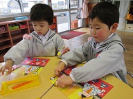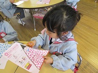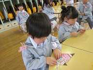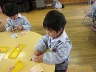 1つの製作の中に はさみやのり、シール、折るなど・・・