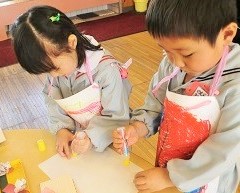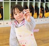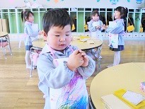 出来たエプロンをつけて、みんなでお寿司屋さんに変身です!