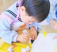 はさみ遊びで作ったお寿司で 今日は≪おすしやさんごっこ≫をしました。