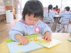 シールの向きを考え、形に当てはめていくので、とても集中力が必要です。