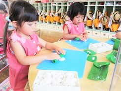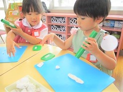 はな組さんのみんなで粘土を楽しみながら道具の使い方を覚えました。