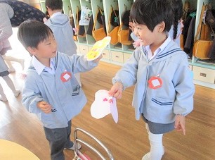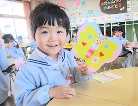 今日は、ハサミを使って「ひらひらちょうちょう」を作りました。