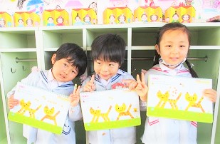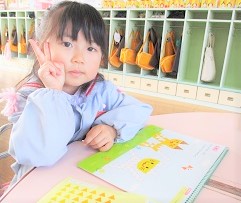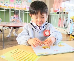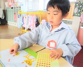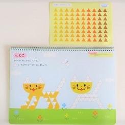 三角のかどに合わせながらシールを貼っていくには、とっても集中力が必要です。