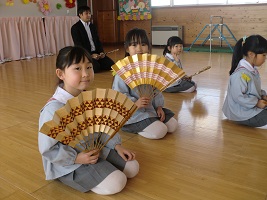 最後の練習では、お扇子を広げて仕舞いの練習をしました。