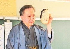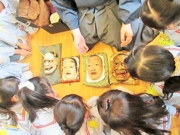 教室で謡いを練習した後、下平先生が面(おもて)を持ってきてくださり、