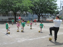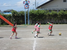 それでも、元気に園庭を走り、 サッカーを楽しむ月組さんでした(^^)
