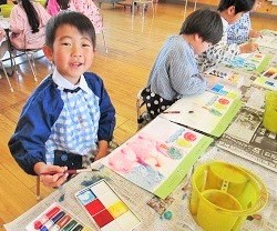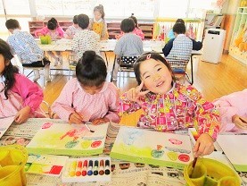 今日の月組さんは絵の具遊びです!