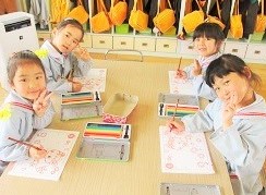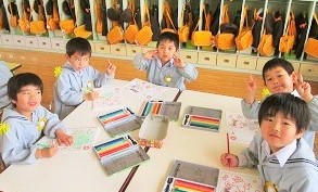 今日は、そのカレンダーの色ぬりに色鉛筆を使いました。