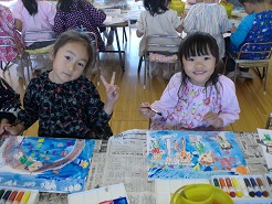 特に楽しかったのは 先日作った紙粘土の自由作品の色塗り!!
