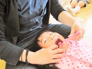 お母様に仕上げ磨きをしていただきました。