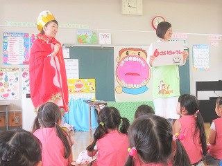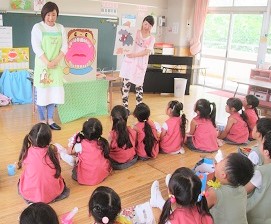 今日、年長月組さんで ≪虫歯予防教室≫ が行われました。