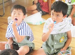 歯の磨きかた、歯ブラシの持ち方、毛先の向きなどを指導していただき