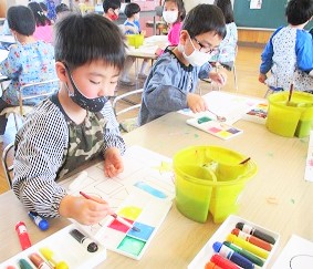 年長月組 絵の具遊び