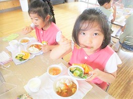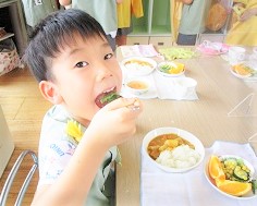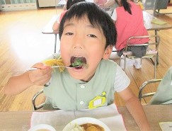 そして今日のお給食に、月組さんが収穫したピーマンが登場しました。