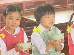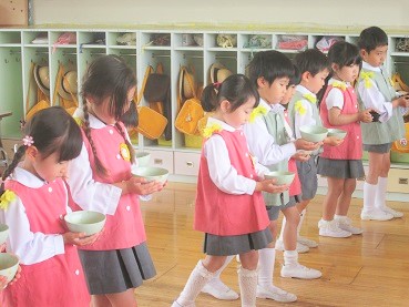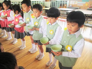 お客様役のお友達に「どうぞお召し上がり下さい」