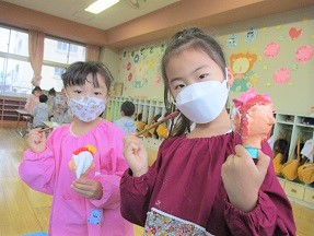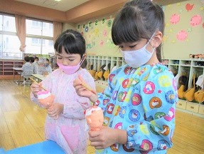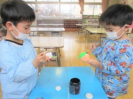 子供たちも絵の具のにおいや感触を楽しみながら取り組んでいます。
