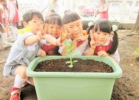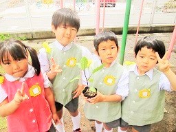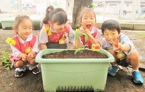 月組さんが 野菜の苗を植えました。