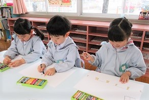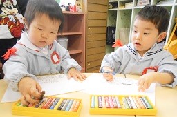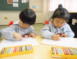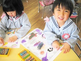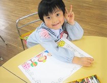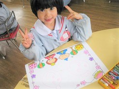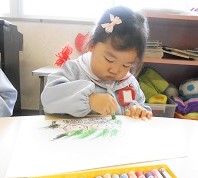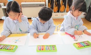 つぼみ組さん、はな組さん、ゆき組さんのみんながお絵描きをしました。