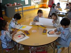 真剣に画用紙に向かう子ども達。