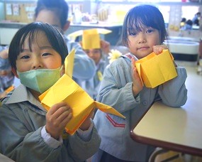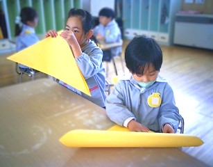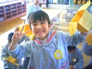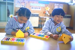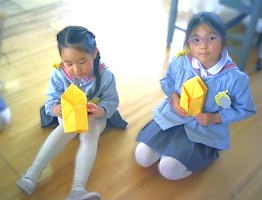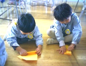 今日は月組さんが、豆まきで使う「お三方」を作りました。