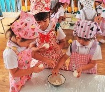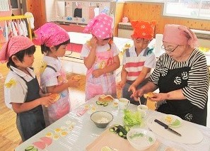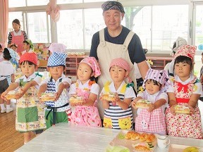 園長先生の デモンストレーションを見てしっかり 作り方を覚えます!