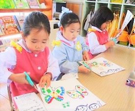 今日は先週から取り組んでいたシール遊びの続きにチャレンジしました。