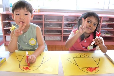 最近、宇宙の折り紙製作や宇宙の絵本に興味深々の月組さん。