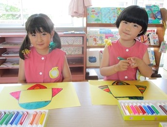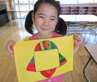 ロケットのデザインを真剣に考えて色塗りをしてくれました。