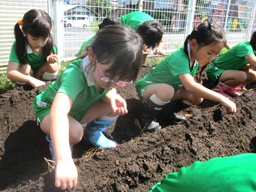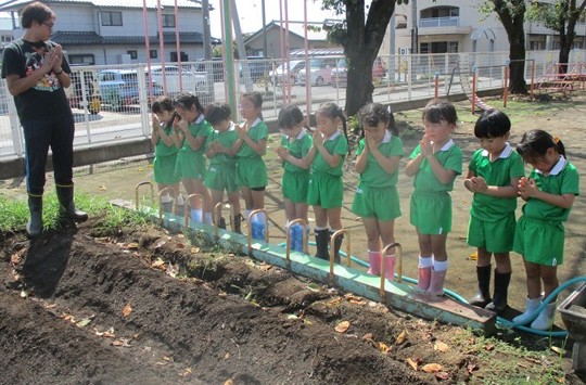 おいしくな~れ! 大きくな~れ!とみんなでお願いしました。