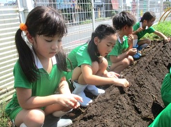 『おいしい大根にな~れ!』と気持ちを込めて、みんなで種を一粒ずつ大切にまきました。