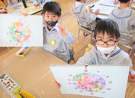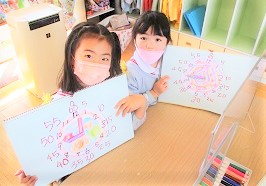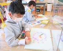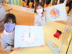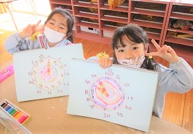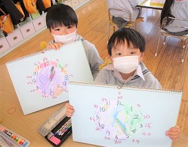 出来上がった時計で時間当てクイズをして楽しみました。