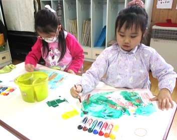 絵の具遊びが大好きな月組さんは、今日を楽しみにしていました。
