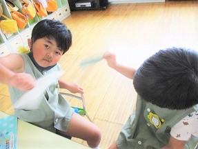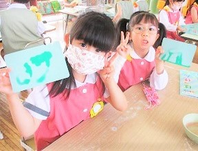 乾かすとまた描けるので、みんな必死に乾かしました!