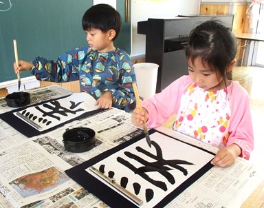 初めてのお習字は楽しかったようです!