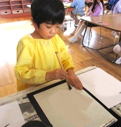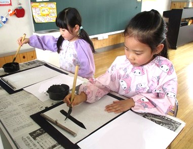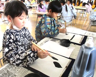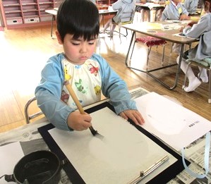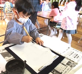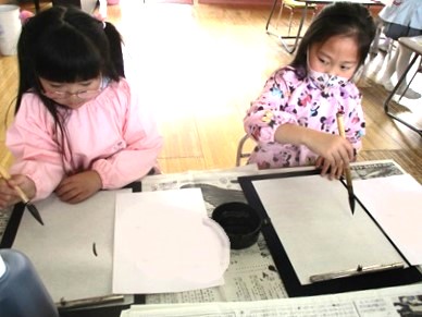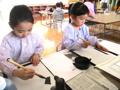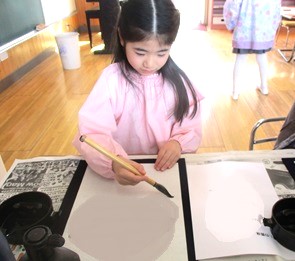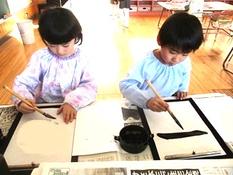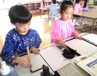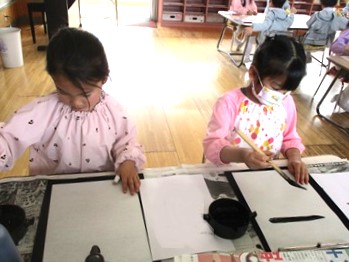 月組さんが少しずつ習字に取り組んでいます。