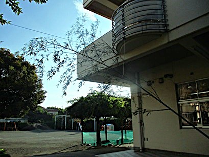 幼稚園のお庭にも大きな竹がやってきました。