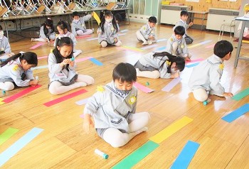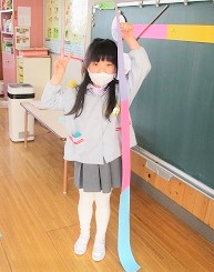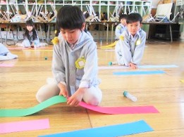 長い色画用紙を使って作るので、机の上に入りきらない!!