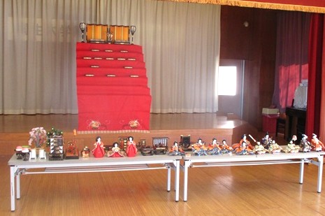 月組さんが飾ってくれたひな壇を見て、みんなでおひなまつりをしたいと思っています。