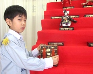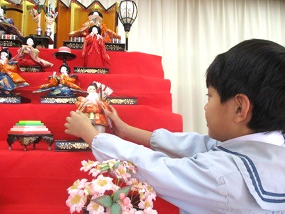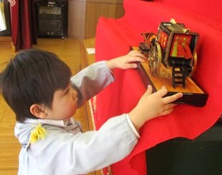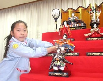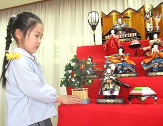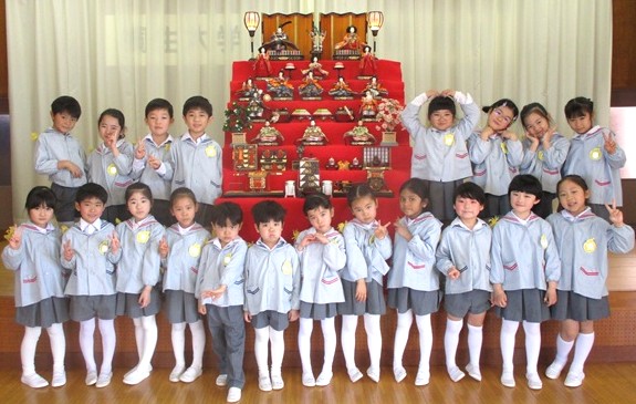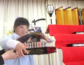 月組さんが、幼稚園を代表してお雛様を飾りました。