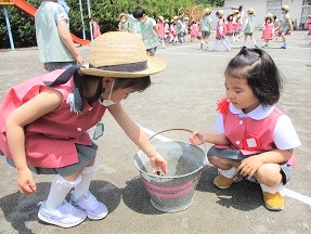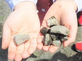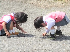 園庭の石拾いを行いました。